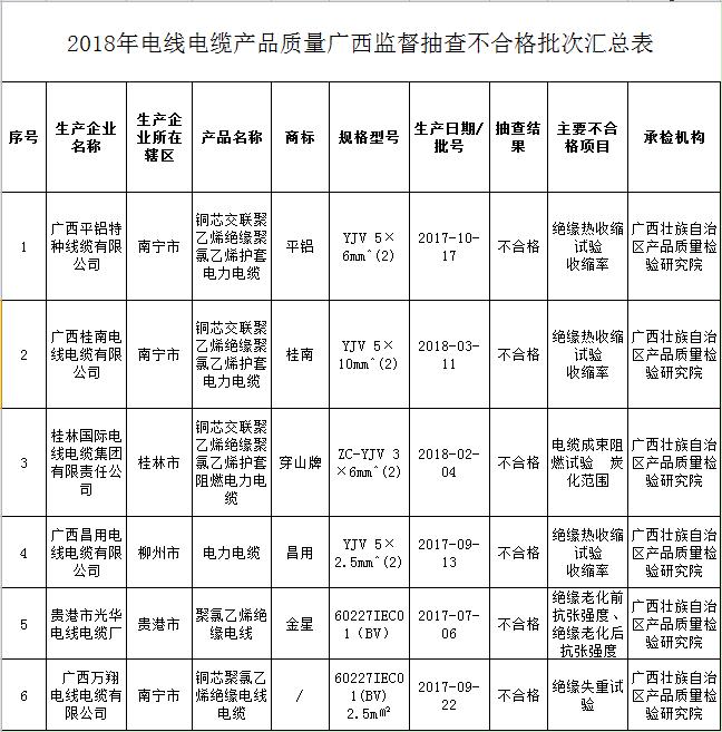 日前,广西壮族自治区质量技术监督局在官网上发布通报,对包括化肥、塑料管件、电线云开(中国)Kaiyun·官方网站等在内的8种产品的质量监督抽查情况进行了通报。其中抽检了43家企业生产的66批次电线云开(中国)Kaiyun·官方网站产品,其中6批次不合格,不合格产品检出率为9.1%。
